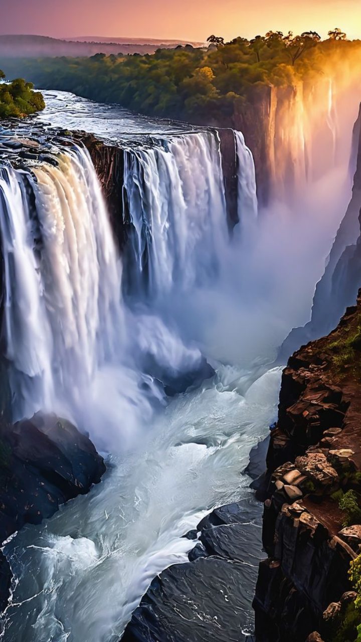 Africa’s second-highest waterfall, dramatically crashing down into a forested gorge.