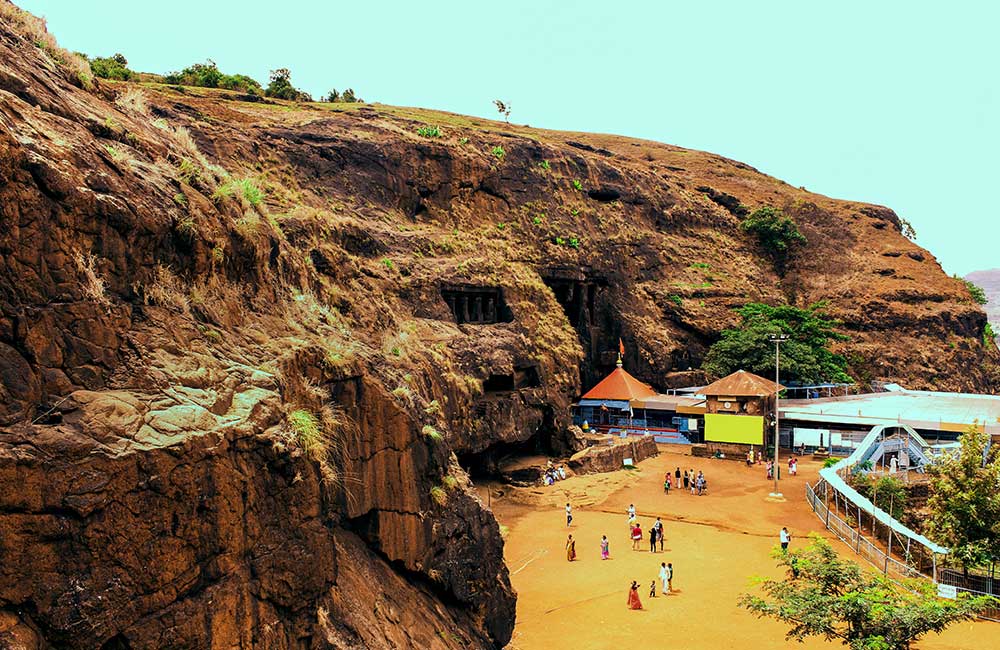Explore ancient Buddhist rock-cut caves with intricate carvings and serene vibes at Karla Caves.